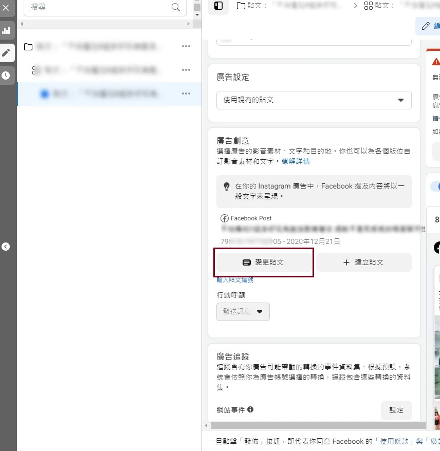 點選編輯,選擇該廣告的變更貼文(圖五)