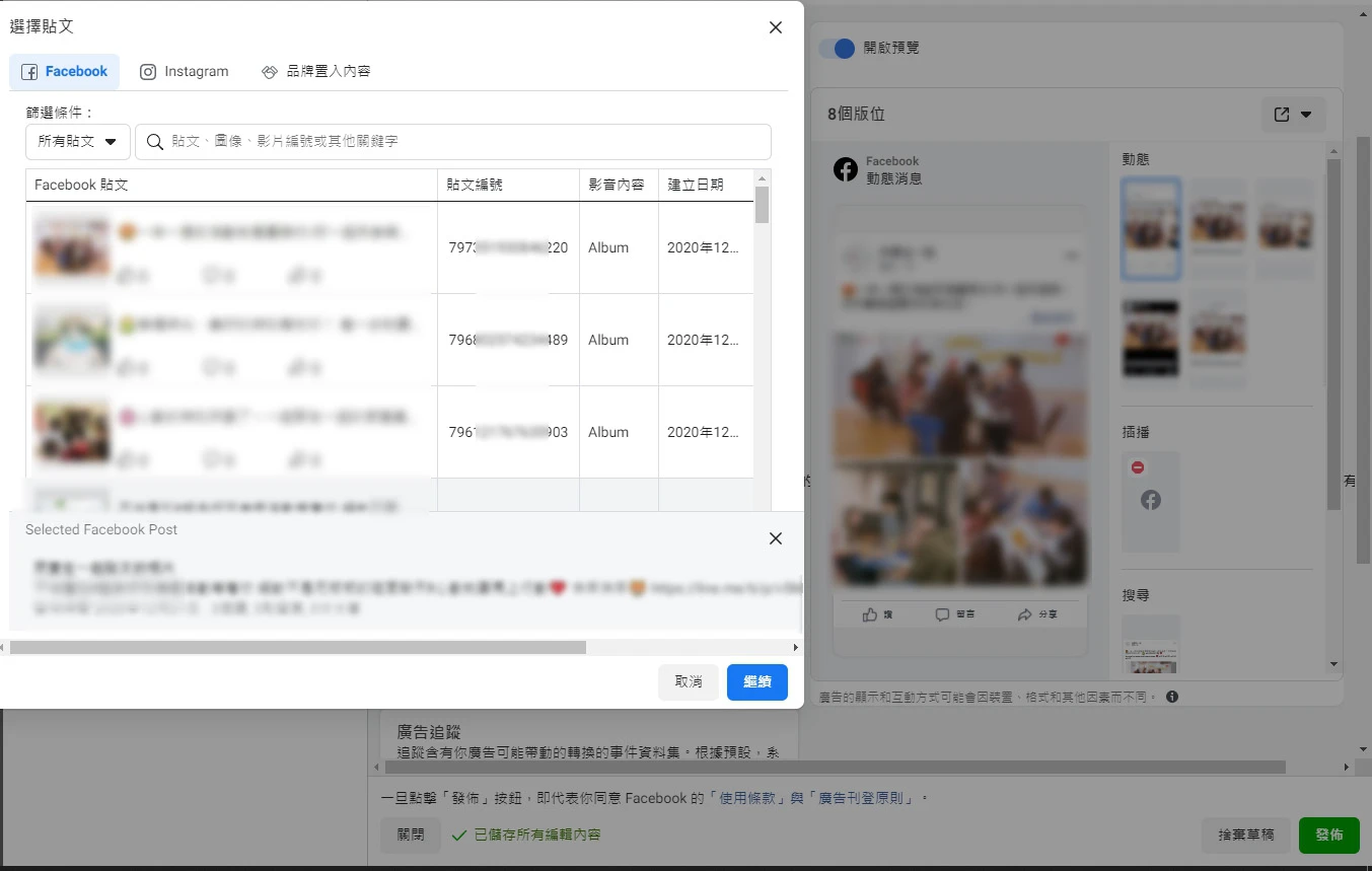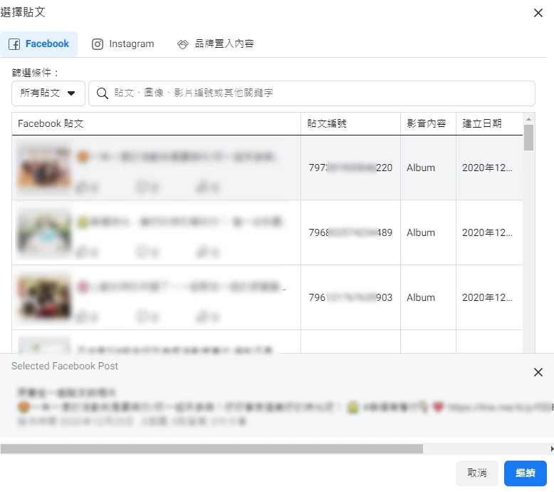 選擇任一組未打廣告的貼文,繼續(圖六)