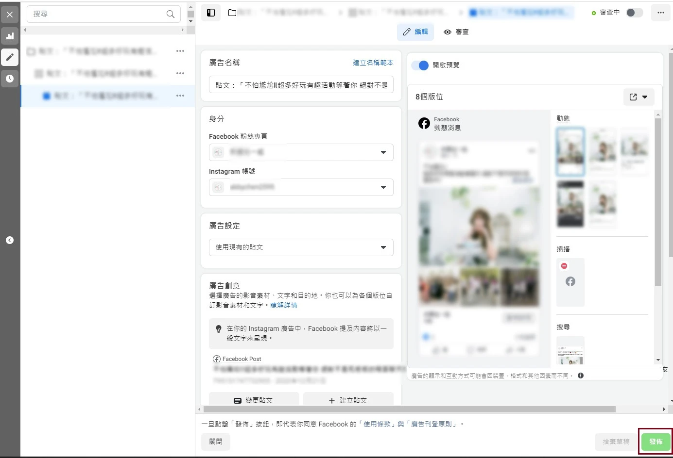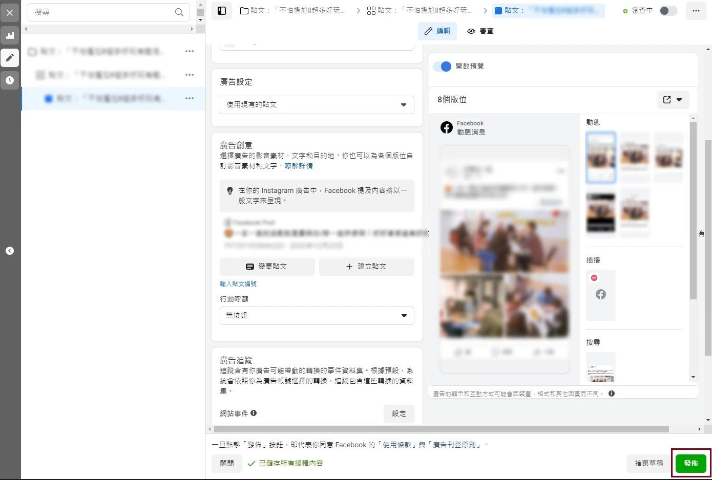 編輯完後,回到廣告管理員,重新把該則貼文變更回來(圖十)