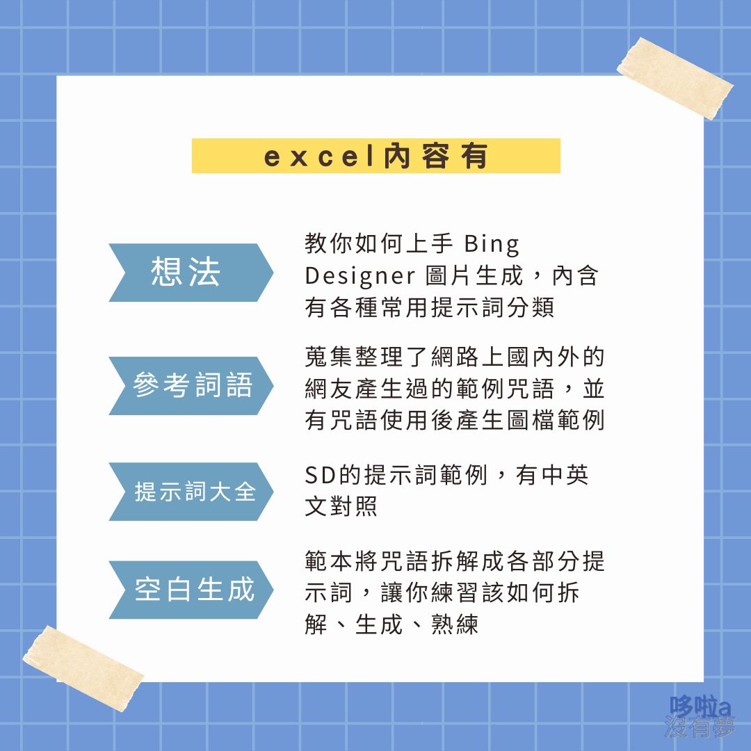 去年 AI 興起,各類型生成平台層出不窮,每個生成平台,都嘗試玩了一陣子後,將這些過程、技巧整理成一篇 Excel,這是第一篇,屬於 Bing Designer 的簡易教學範例,分享給大家~讓有興趣想要將自己夢想畫出來的朋友、或想踏入 AI生成世界 卻不知如何開始的你,能有一個快速參考,容易上手的說明。
