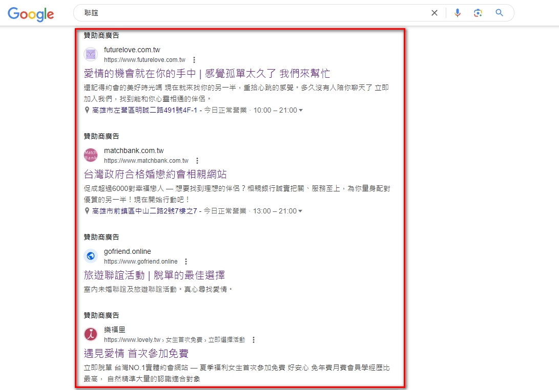 關鍵字廣告格式如下,只有文字沒有圖片喔!