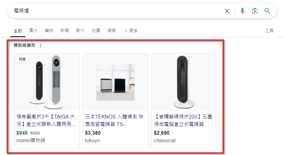 購物廣告(Shopping)廣告格式如下:
