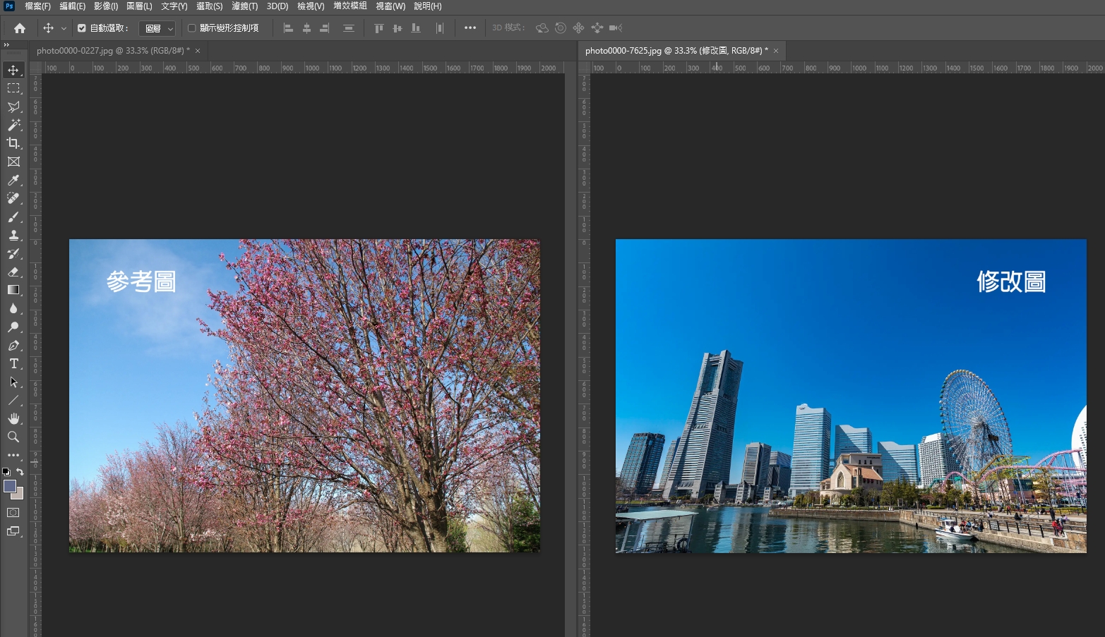 1.首先將參考圖和要修改的圖,都用 PS 開啟: