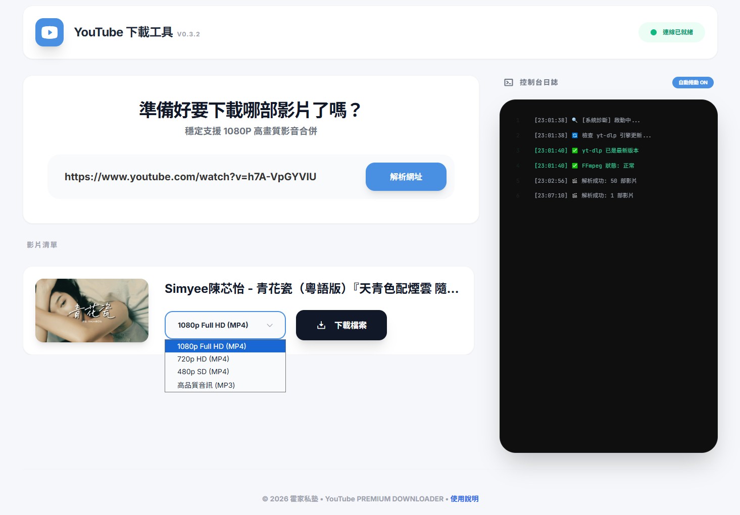 YouTube 影片下載工具 v0.3.2 完整操作指南